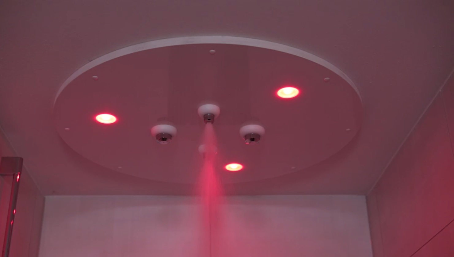 Urmează Tropical Rain, iar picături mari, calde, cad sub formă de ploaie tropicală iar o aromă fructată este dispersată în interiorul dușului.