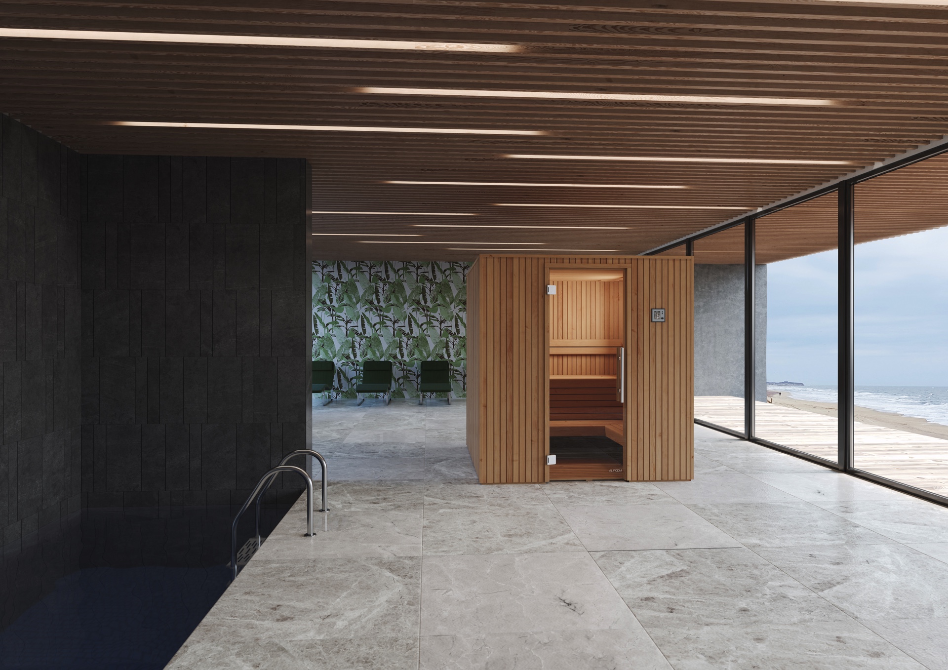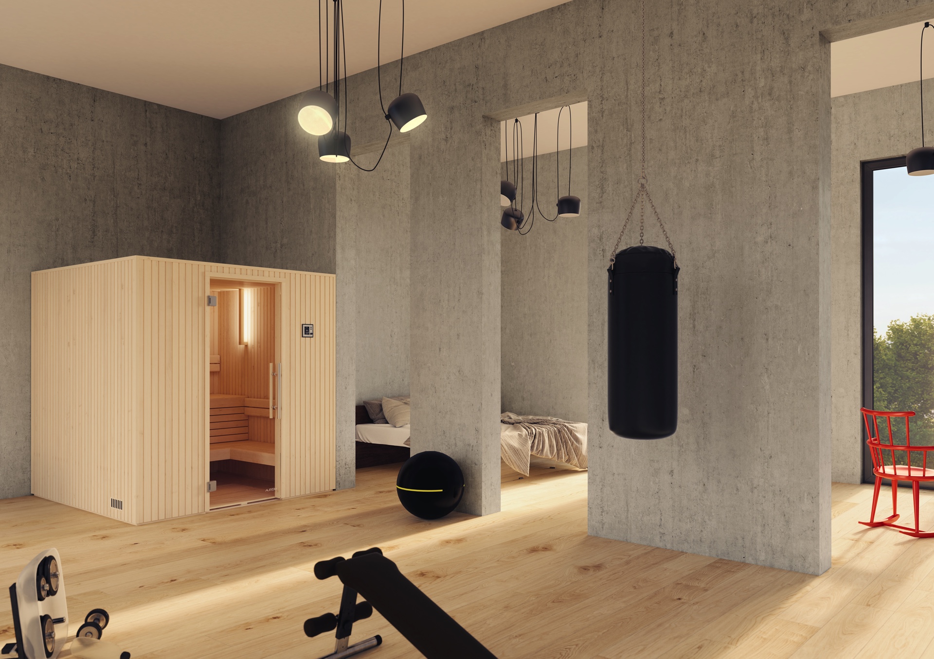 Opțiuni și accesorii Kit saună (găleată și lingură, clepsidră, termometru, termohigrometru), set 5 arome, prosop, pălărie, pernă