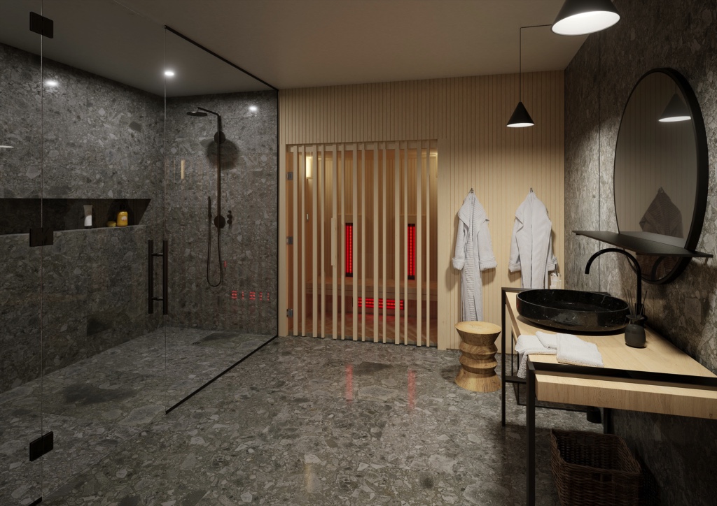 Opțiuni și accesorii Kit saună (găleată și lingură, clepsidră, termometru, termohigrometru), set 5 arome, prosop, pălărie, pernă