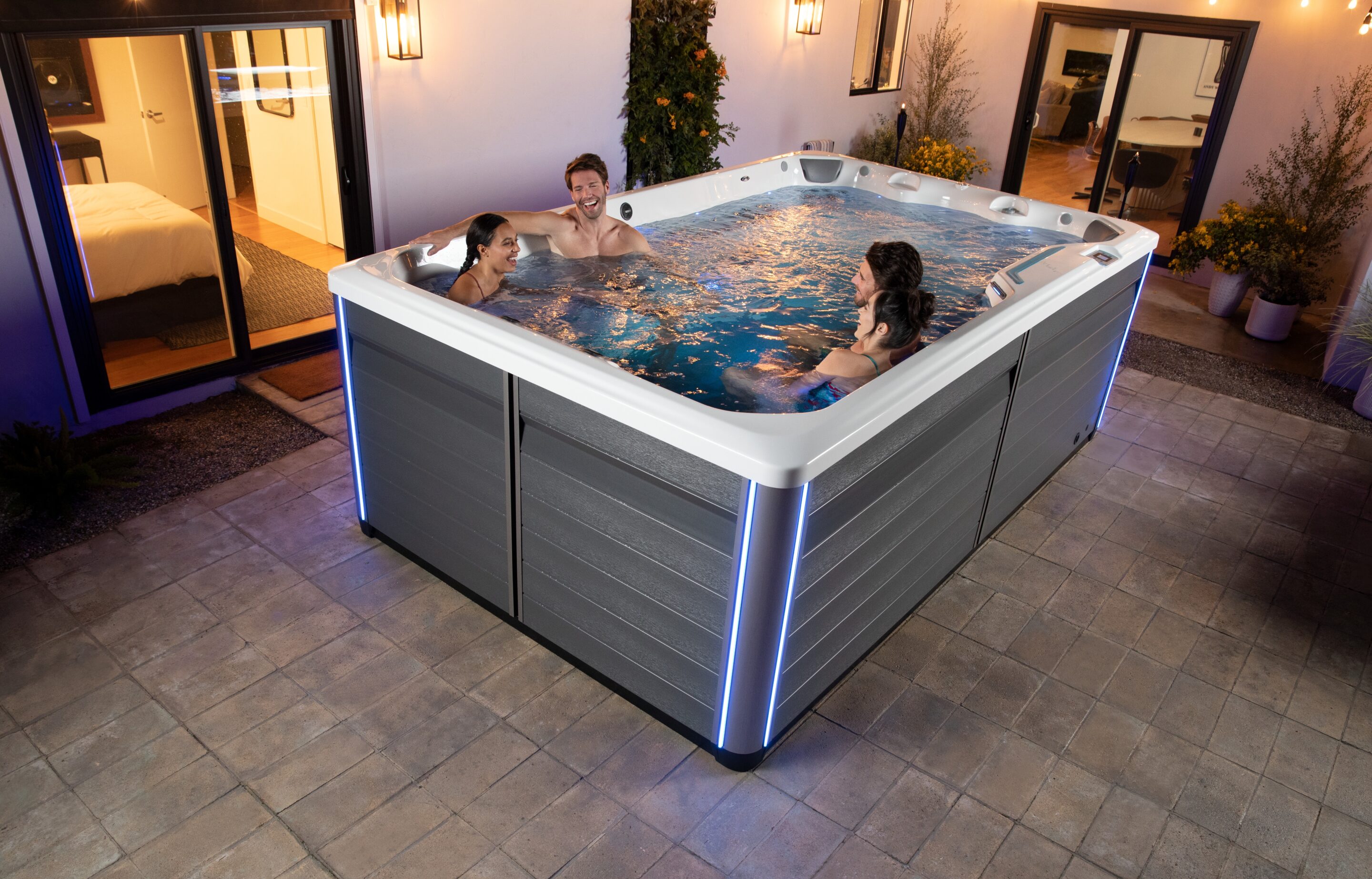 Piscina de înot R220 dispune de nouă locuri și este prevăzută cu două bănci lungi în lateral și cinci scaune în spate, plus 31 de jeturi de hidromasaj amplasate atent pentru a oferi confort și relaxare maximă. Optați pentru iluminare LED și sistemul muzical Bluetooth® pentru a vă crea spațiul de vis pentru divertisment, distracție și relaxare. De asemenea, modelul R220 oferă o mulțime de opțiuni pentru exerciții acvatice cu impact redus, cu trei jeturi de înot fără aer pentru a oferi rezistență și pentru a vă stimula antrenamentul.
